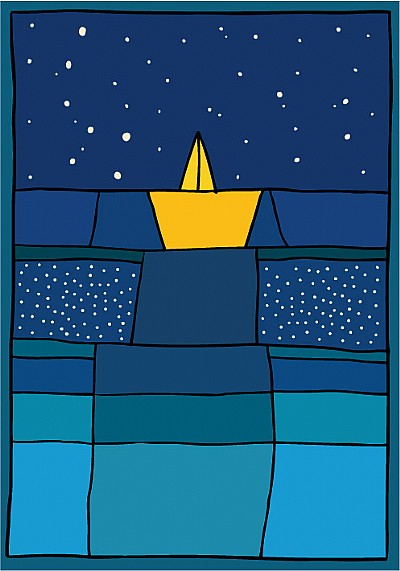 Ci incanta nelle barchette gialle, ancorate all’orizzonte, gioco bambino, che è galleggiante metafora dell’umano esistere, solitarie o accoppiate: l’io e il tu nel mare della vita.