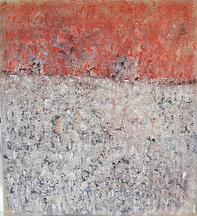 La terra e l’acqua son gli elementi essenziali per dare inizio alla vita, e la ricerca della vita si esprime anche attraverso le vibrazioni cromatiche: i colori come fossero vivi, scivolano sulla tela, creando distese marine e laghi ghiacciati, campiture granulose che richiamano terre argillose sulle sponde dei fiumi.