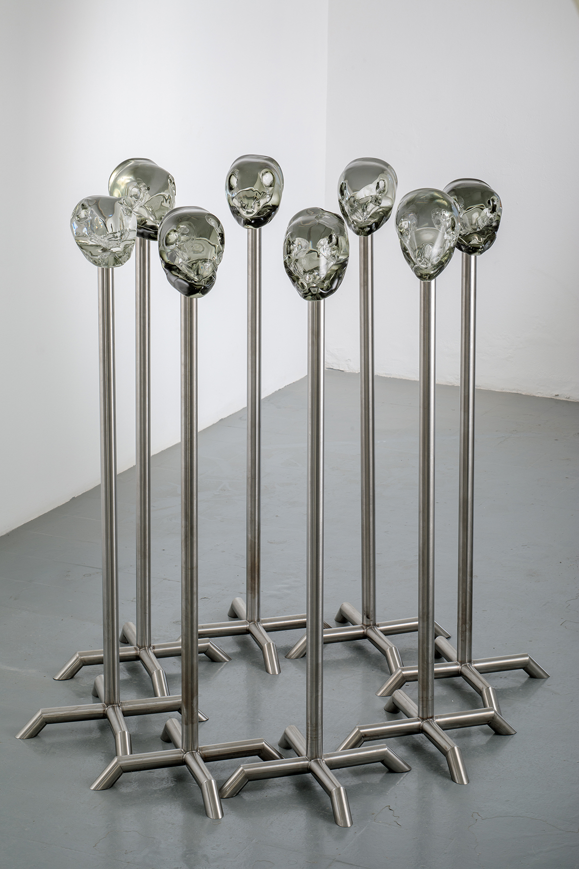 “Il tema centrale di Glasstress 2022 – State of mind è la fragilità. Nella nostra epoca, non solo il processo di nascita è fragile. Nel contesto in cui viviamo, anche la vita stessa è diventata fragile”, spiega il co-curatore Koen Vanmechelen, che continua: “Le opere sono esposte nel luogo di nascita del vetro, un'antica fornace, un paesaggio che rivela quanto siano fragili questi tempi, soprattutto per la mente umana. Tutto può essere rotto, eppure questo processo di violenza non deve necessariamente significare una fine. Quando pensiamo in modo creativo, senza limitazioni, capiamo che all'interno di questo processo si può sempre trovare la speranza di riparazione, restauro e rinascita. Insieme dobbiamo sperare, dobbiamo concentrarci su una nuova generazione; ciò che uscirà dal fuoco sarà fragile e deve essere custodito. Tra le sculture esposte, troviamo una sedia su cui ci si può sedere o ci si può far male, un lampadario circondato da api che rischiano di essere gli Icaro del nostro tempo, di bruciare le loro ali e di precipitare sulla terra, non visti e dimenticati. Il lampadario rivela la preziosa identità dell'umanità. Le teste di vetro esposte ci dicono che anche i nostri leader sono fragili, mentre la mente è il nostro strumento più potente per immaginare un nuovo futuro. Dobbiamo quindi proteggerci, essere attenti e trasparenti. Solo nella trasparenza si può scoprire una nuova vita”.