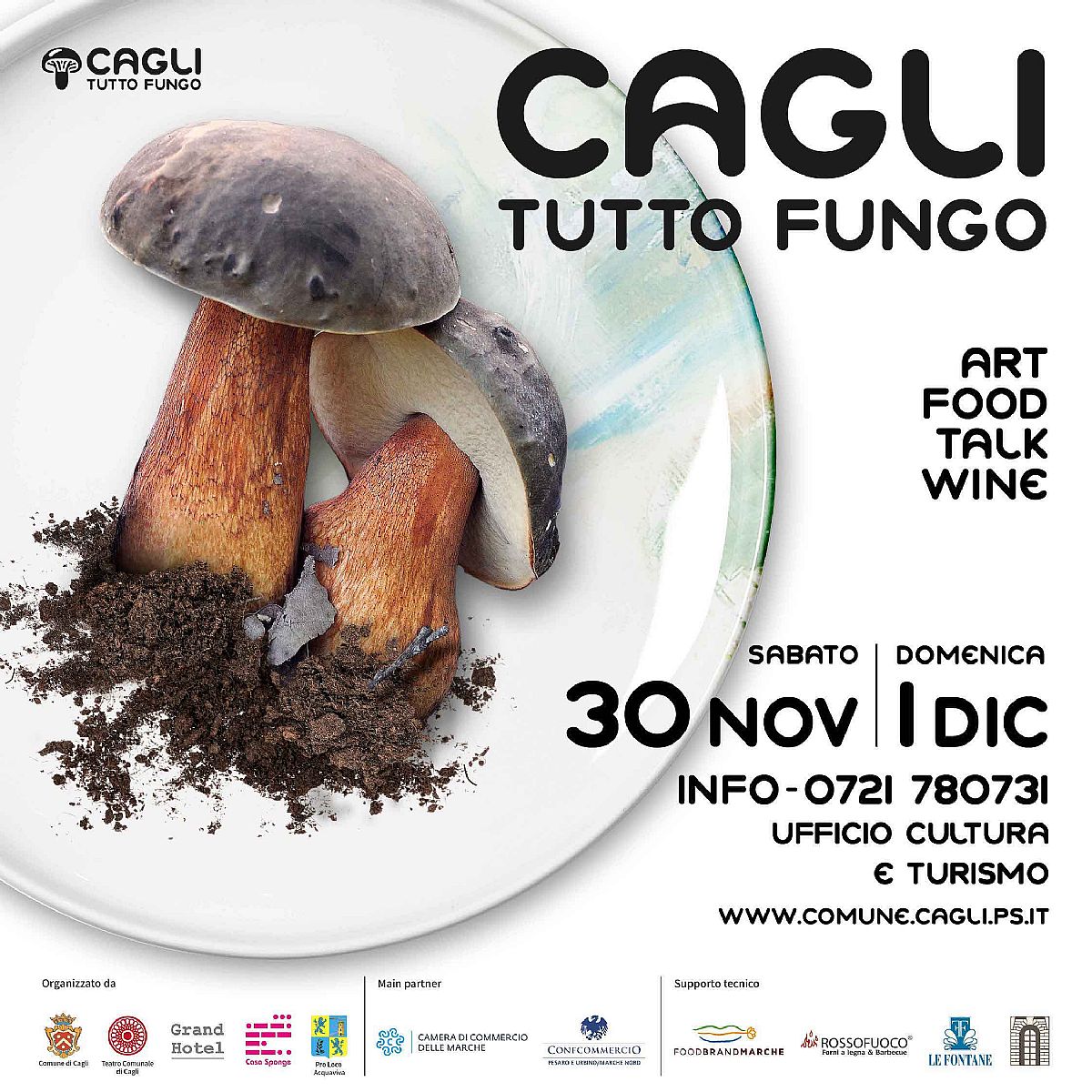 Cagli Tutto Fungo è una iniziativa ideata dal Comune Di Cagli progettata in collaborazione con l’artista Giovanni Gaggia, con il critico enogastronomico Antonio Paolini e con l’Associazione Pro Loco di Acquaviva, organizzata dall’Associazione Culturale Grand Hotel e Casa Sponge APS, main partner Camera di Commercio delle Marche e Confcommercio Pesaro e Urbino/Marche Nord, con il supporto tecnico di Food Brand Marche e Rossofuoco forni a legna e barbecue.