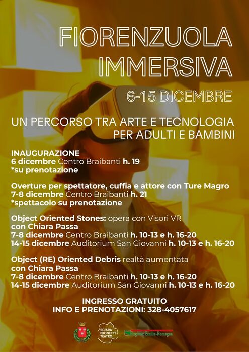 Il comune di Fiorenzuola d’Arda e Sciara Progetti presentano il progetto "Fiorenzuola Immersiva: Dalla Tradizione al Digitale", una serie di eventi dedicati a portare la cultura teatrale e artistica nel futuro, combinando esperienze dal vivo con tecnologie immersive. Dal 6 al 15 dicembre 2024, Fiorenzuola sarà il palcoscenico di un'esperienza unica che coinvolgerà formazione, spettacoli immersivi, installazioni di realtà aumentata e virtuale.